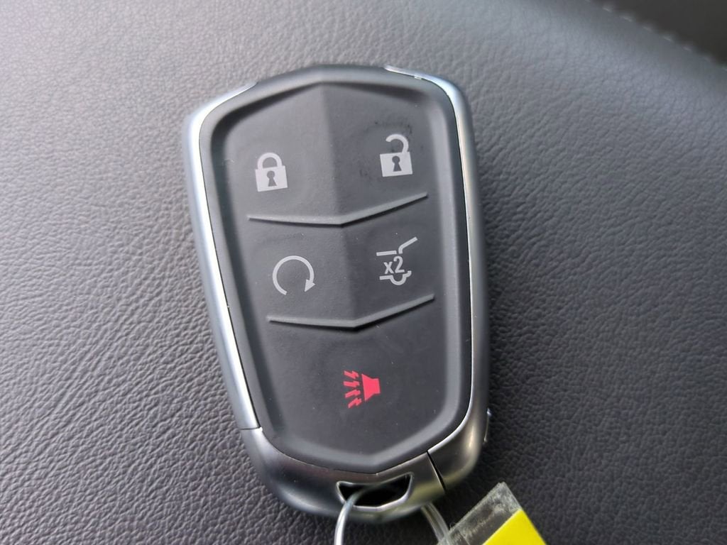 - Opens or closes when the system senses the key fob and the driver extends their foot under the left-hand side of the rear bumper over an image of the Cadillac Crest projected under the vehicle